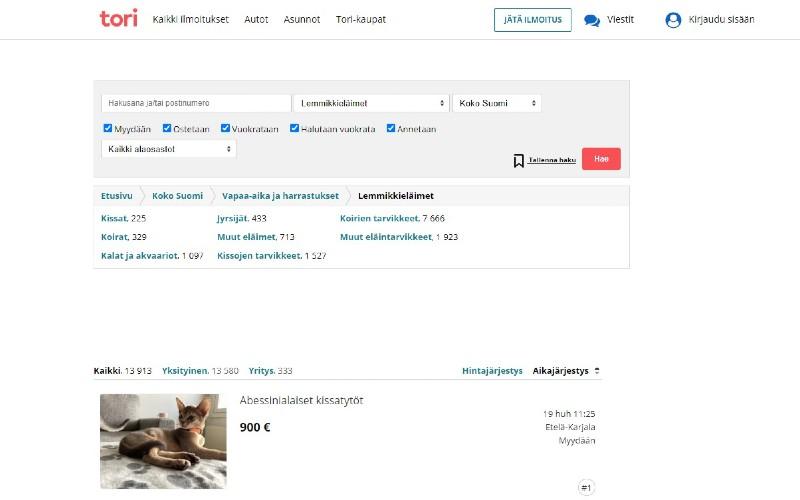 Etsitkö lemmikkiä? Hae Suomesta, EU:sta tai EU:n ulkopuolelta.